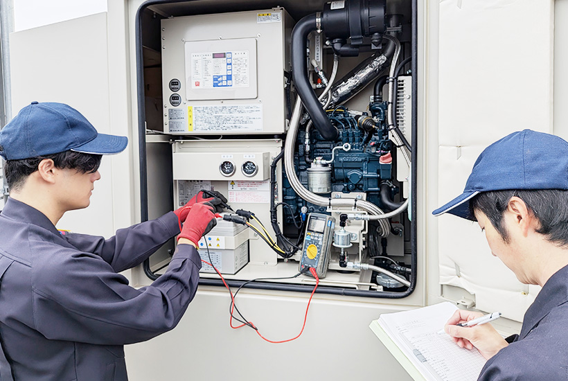 非常用自家発電設備は、法令により定期点検の実施が義務付けられています。